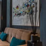 Perfect for a relaxing stay, the property offers a terrace and a seating area with sound-proofed windows, and convenient amenities such as air conditioning. Guests are provided with a sofa set, along with a variety of media options, including a TV. A bathroom has a walk-in shower and a separate toilet, as well as hairdryers and bathrobes.